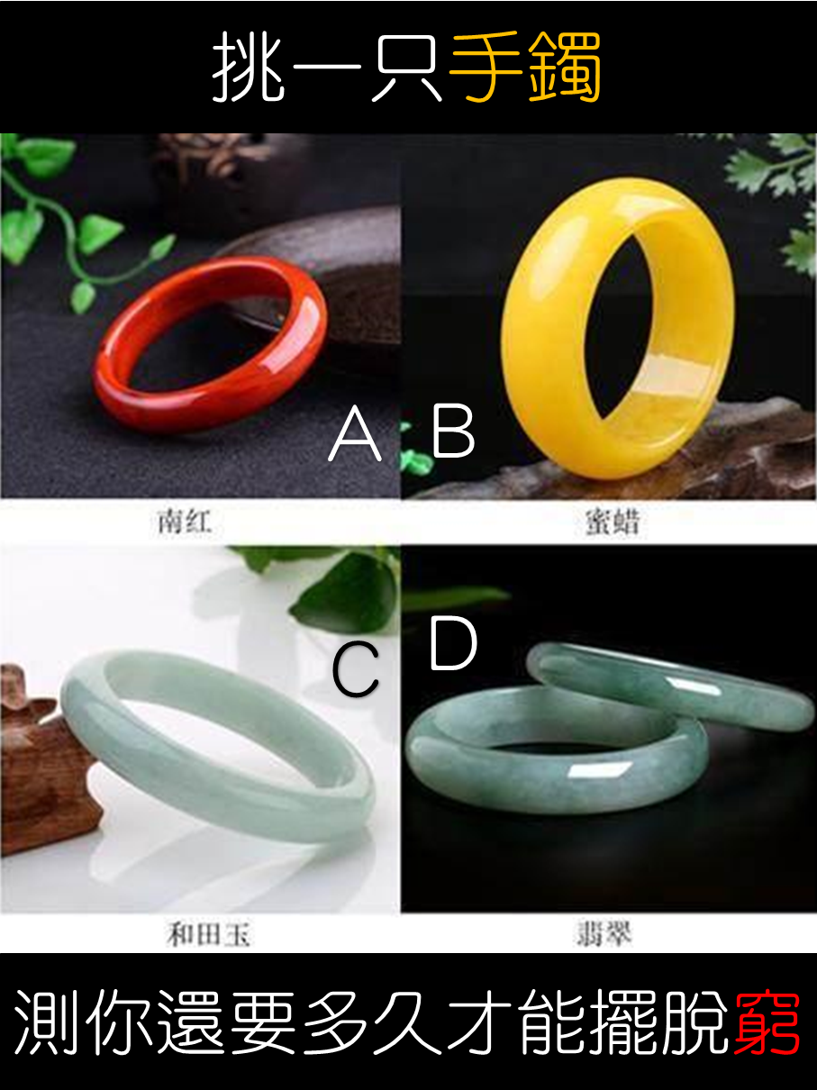 選【A】:南紅。勤奮努力的你早已脫貧致富