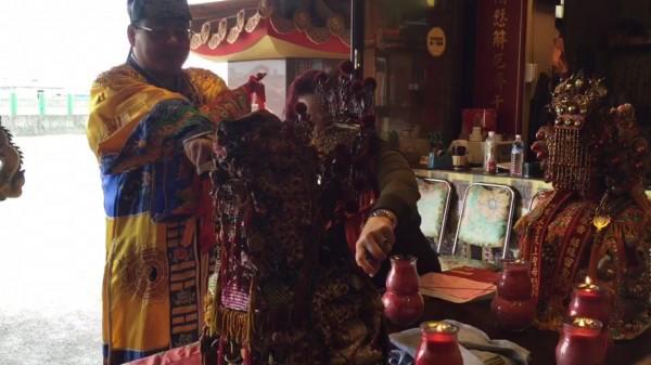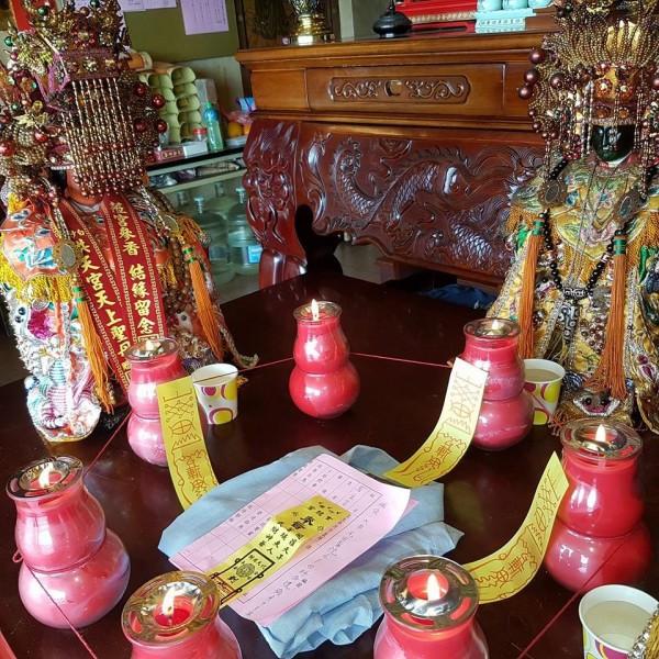 ▼心焦的家屬向南玄龍宮的一玄法師求助,他便幫忙進行七星續命燈科儀,並請求四媽菁埔夫人賜金身木片,最後鑿下九片木片交付給家屬,讓他們煮成水後擦拭身體,之後蔡金吉員警的昏迷指數就一路從3分進步到8分,好轉神速!