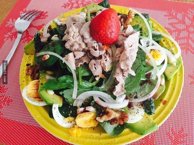 午餐來一點沙拉之類的。可以是煎鮭魚 & 清蒸洋蔥西蘭花、菠菜、秋葵、紅椒、蕃茄、香菇,低鹽加黑胡椒;也可以是羽衣甘藍菜 + 嫩菠菜 + 洋蔥水煮牛肉片,加一點酪梨、水煮蛋、核挑、松子再灑上一點白芝麻、黑芝麻粉,淋上一點醋汁(椰子油也不錯喔!)。讓食物多一點層次,多一點驚喜,讓自己瘦的滿心歡喜!