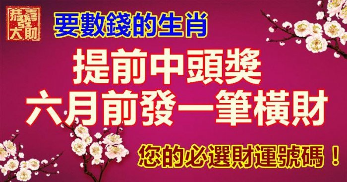 要數錢的生肖,提前中頭獎。六月前發一筆橫財。您的必選財運號碼!
