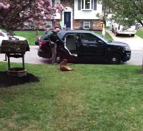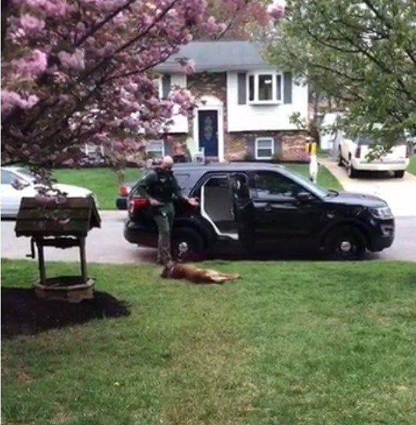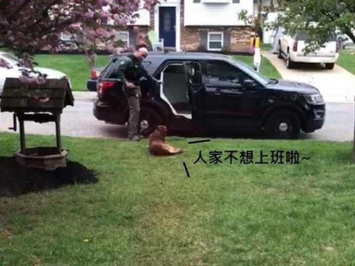 一個領養警犬的飼主分享,在要把狗狗帶回家前,他呆立在原地不上車,
