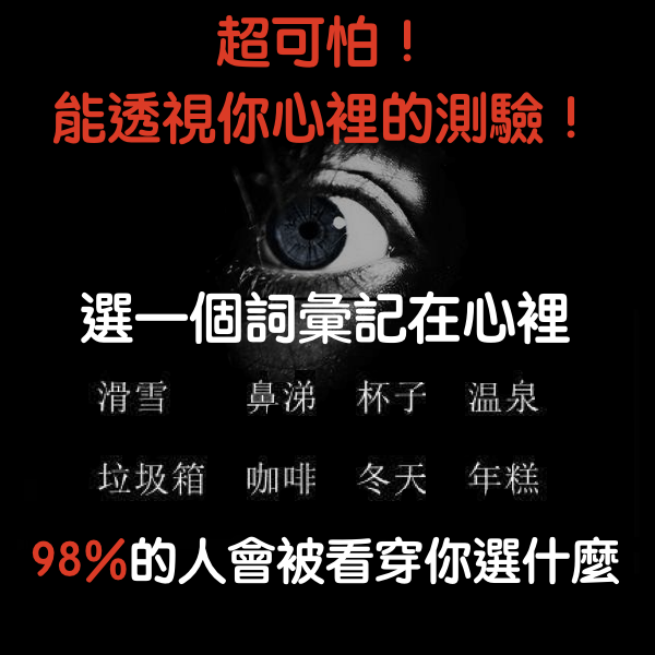 【笑爆心測】超可怕!透視你心裡的測驗 任選一個詞彙記在心裡 98%的人會被看穿選了什麼