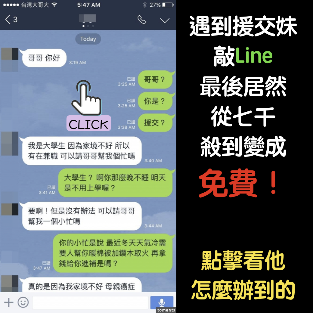 不過,這種對話還是玩玩就好,可別傻傻的真得出去「交易阿」,以免被仙人跳!