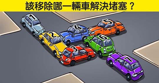 ▼問題1:有7輛車在十字路口互不相讓,導致所有車輛都無法繼續行進。請問應該移除哪一輛汽車,就能讓交通恢復順暢?