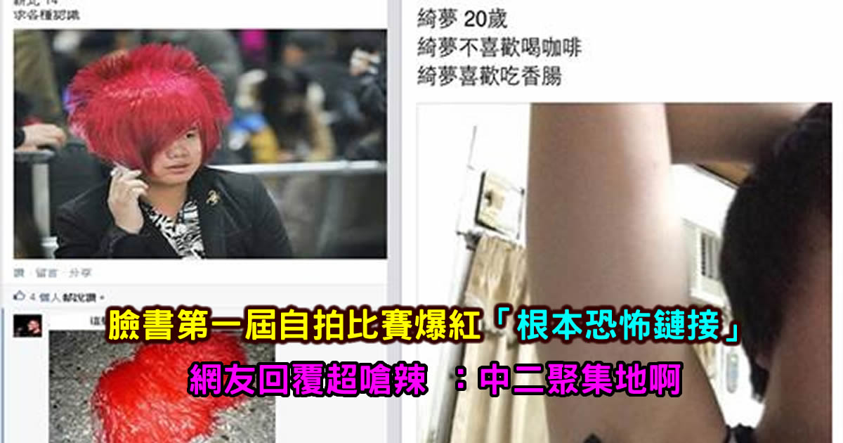 不知道各位有聽說以前臉書上搞的一個活動——第一屆自拍比賽嗎?XDD....不看不知道,一點進去嚇一跳!參賽者平均年齡大概在11~16歲左右,有些感覺不出來到底是反串還是認真...哈哈哈哈哈!不知道看完以下的圖片卡友們會不會也想參加?