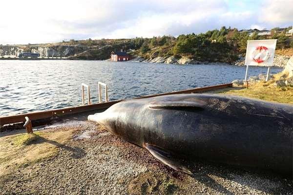 近日,挪威西部的海岸上,有研究人員發現一隻大鯨魚擱淺於岸上,儘管相關單位的人手不斷引導鯨魚游回大海,不過回到海中的鯨魚依舊無法正常游泳,直直被浪花沖上浪,最後海洋人員認為牠可能病得太嚴重,無法海中生活,而將其安樂死。