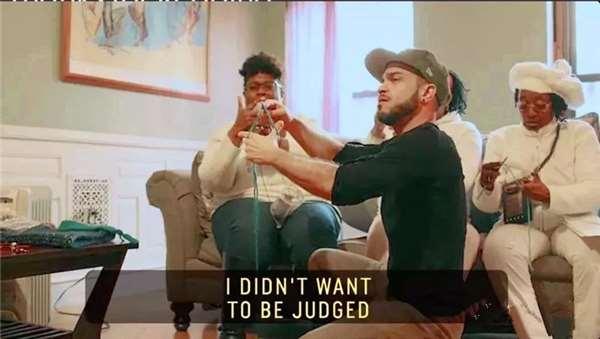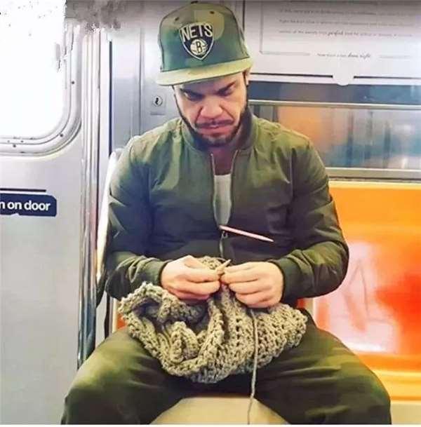 在大庭廣眾之下,讓一個大老爺們安之若素地織毛衣,真有點難為情。