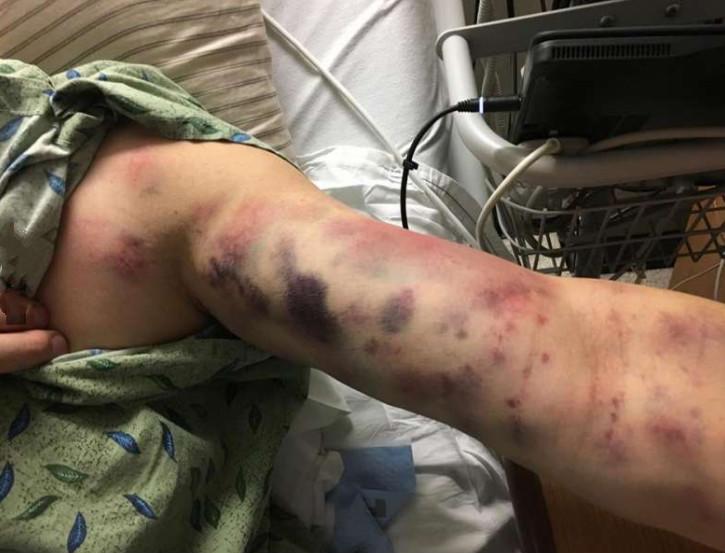 才過沒幾小時,他的手臂竟然出現一塊一塊的瘀青,而且疼痛到無法忍受!傑伊的老婆在擔憂之下,馬上送他到醫院治療,沒想到醫生檢查後竟然查不出病因,根本不知道他是被什麼蟲咬傷,也不知道為什麼會出現這樣的症狀!