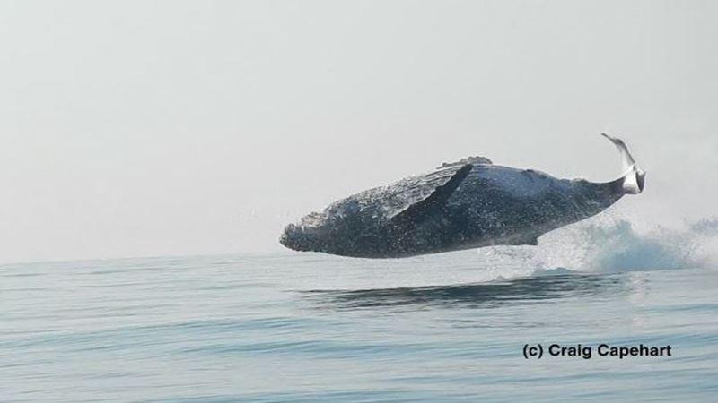 且這隻座頭鯨竟然像海豚一樣一直躍出海麵在落下,讚嘆的畫麵幸運地被錄了下來。