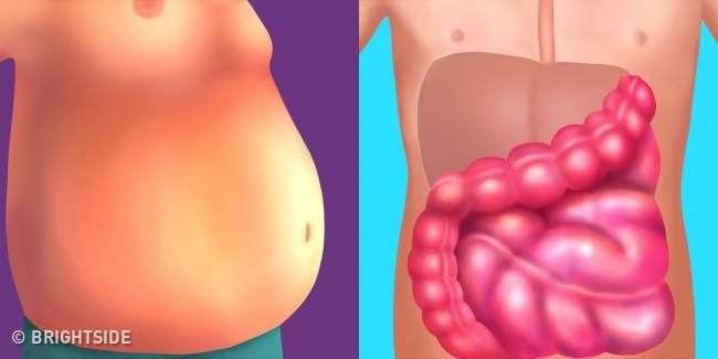 ▼腹部臃腫:壓力太大、缺水、暴飲暴食都會導致腹部脹氣,有時候只是覺得不舒服,有時候會便秘。