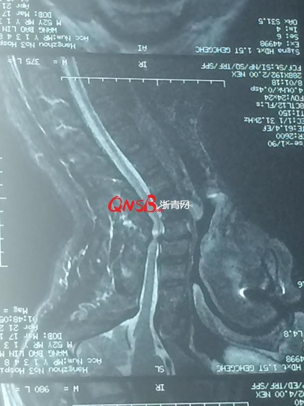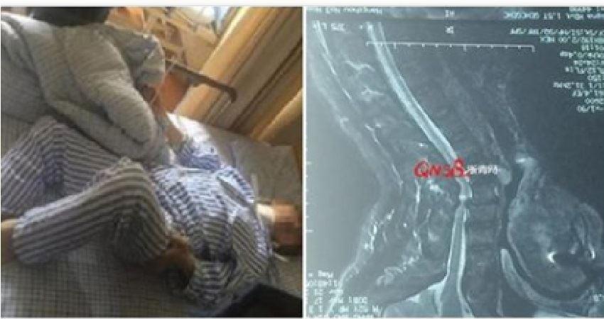 剛入院時,懷疑為中風在神經內科就診,顱內磁共振並未發現出血,2天後做了脊椎磁共振發現了問題,轉到骨科由瞿杭波負責,最後確診為脊髓型頸椎病伴不全癱,一種重度癱瘓疾病,接近全癱。