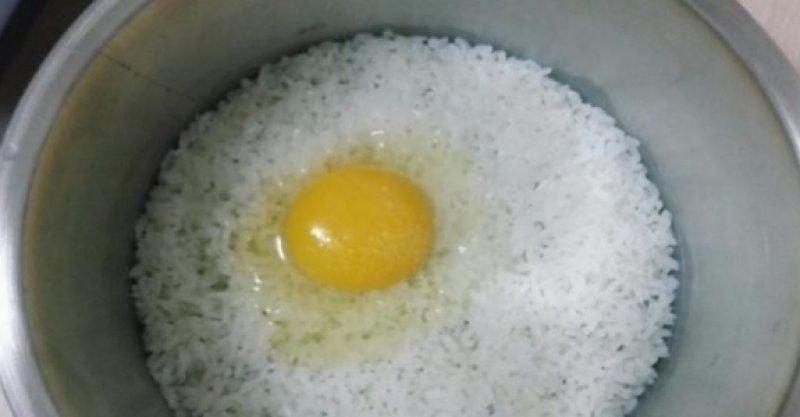 1.先將米飯蒸熟之後放涼, 加入一顆生蛋,還有些許鹽巴攪拌!