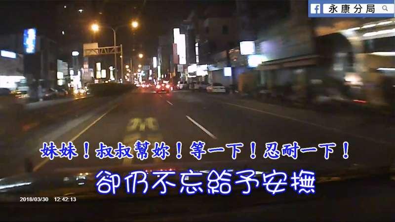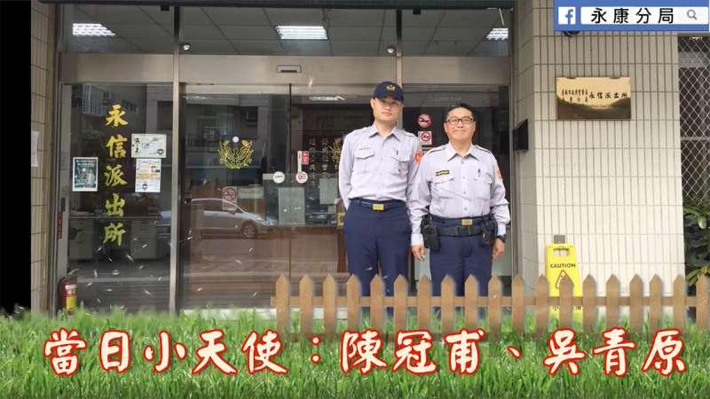 根據臉書「永康分局」粉絲頁分享,3月30日晚上,永康分局永信派出所警員吳青原、陳冠甫正在進行巡邏時,一輛黑色小客車突然衝過來求助,蘇姓駕駛搖下車窗表示「可不可以幫我開路,我們小朋友突然在車上沒有心跳」!