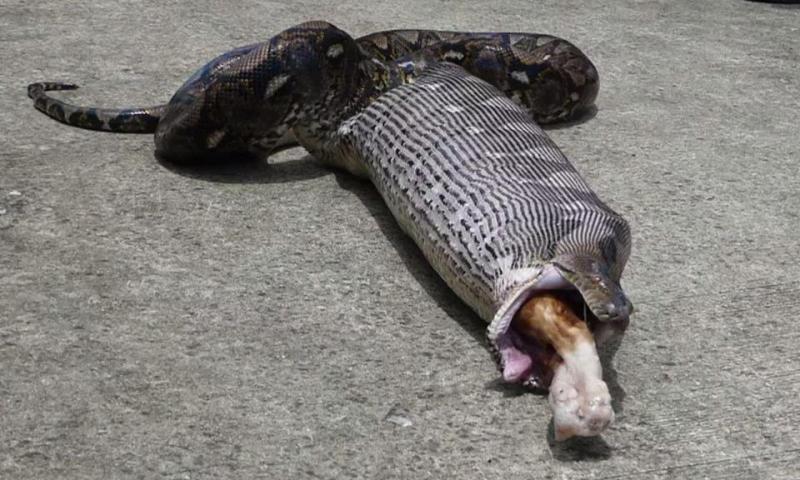 ▲這條蟒蛇到底吞了什麼@@(source:THE SUN,下同。)