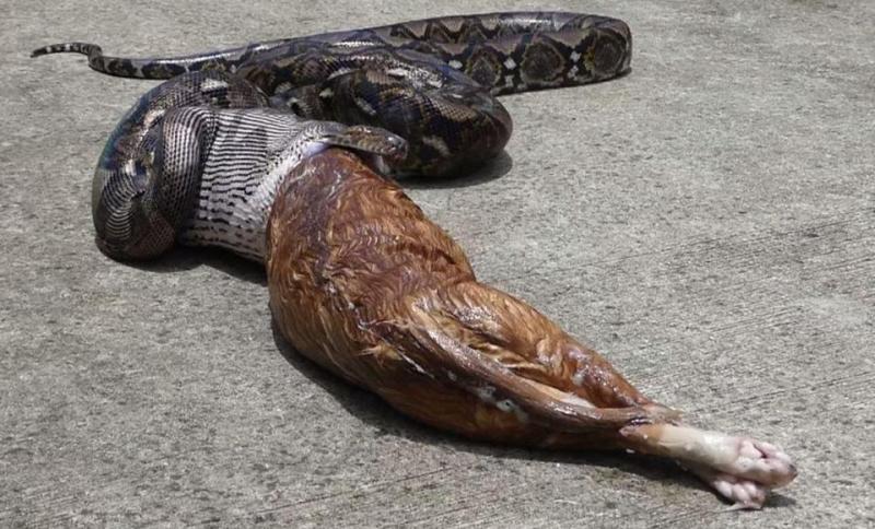 不曉得各位是不是原本就知道了,某些國家的居民常在自己家中發現蛇,其中各個網路小編最熟悉的莫過於澳洲了;如果認真搜尋的話,無數個澳洲人都在自己的馬桶裡發現過至少一條蛇。不過無論發現的是小蛇還是大蛇,一般人的反應應該都是打給消防隊,請他們到府處理,但如果那條蛇嘴裡已經咬著獵物了呢?