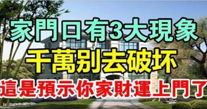 發現家門口有3大現象,別去破壞,這是預示你家財運上門了。家裡的大門口是家人們每天都要進出的地方,每天都要經過這裡,是整個家庭招財納福的地方,也是留給親朋好友的第一印象的地方,所以家門口在家裡的地位是很重要的。如果家門口出現了一些景象,有時候是代表了一個好運勢的到來,在家偷著樂吧。