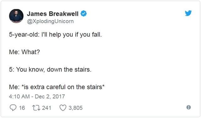 5歲女兒:「你知道的,下樓梯的時候」