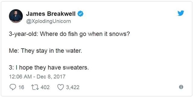 ▼3歲女兒:「下雪時魚都去哪呢?」