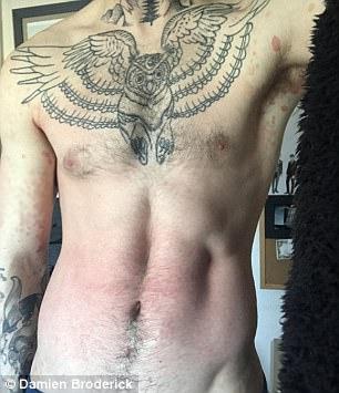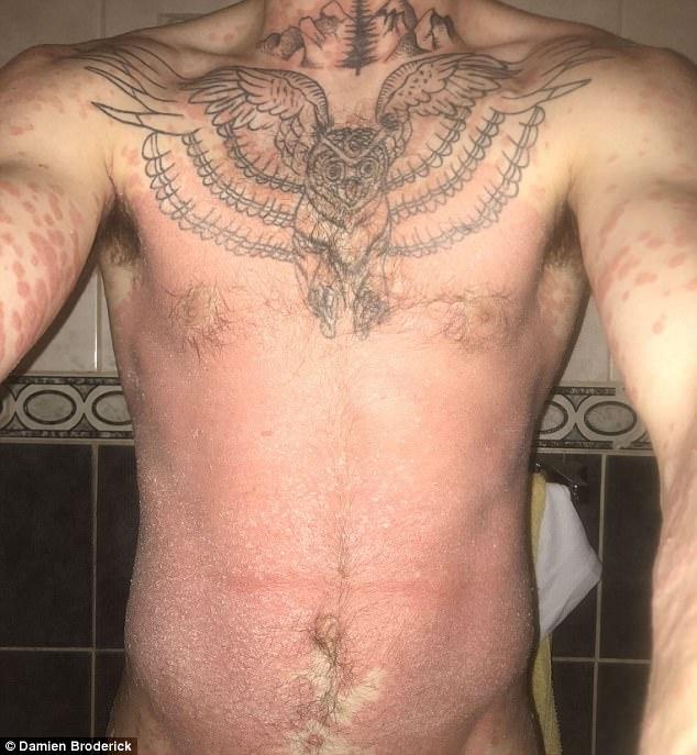 ▼Damien十八九歲時被診斷出罹患乾癬,這是一種慢性皮膚病,患者的身上會有塊狀的異常皮膚,這些皮膚會發紅、發癢、脫屑。