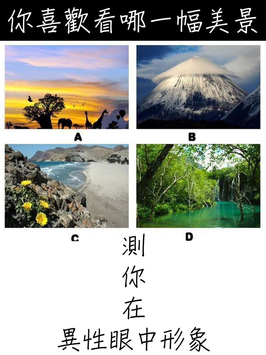 選擇分析:就像這圖片中的山水一樣,生活中的你純潔脫俗。但是你很拒絕見面熟,所以在與人