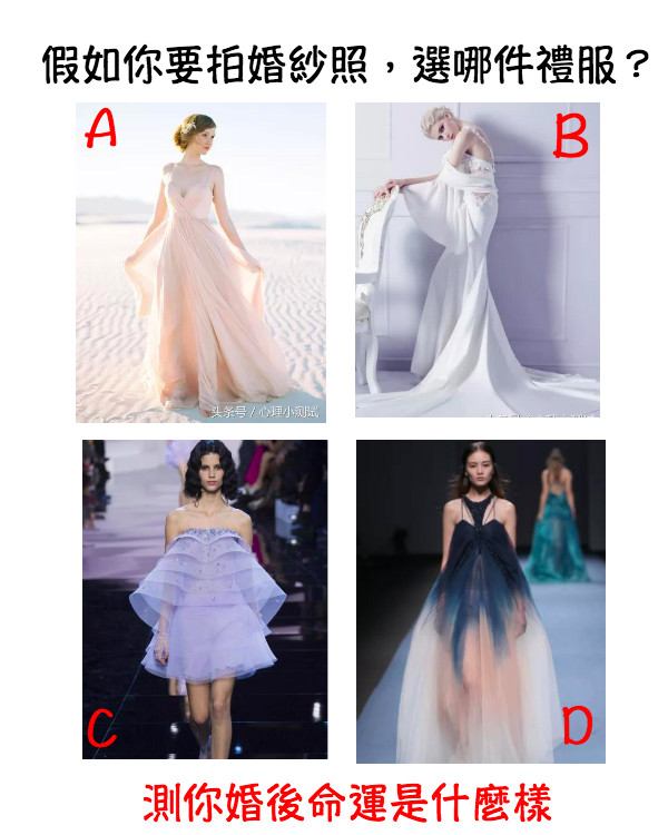 選擇D的人:你總是陷入糾結的情緒中,情緒也是時好時壞,讓人傻傻分不清。你嫁給的是喜歡你的人,在他面前你能放肆能任性,很多時候他都要包容你的壞脾氣,甚至不知道拿你怎麼辦。你帶給他多少快樂,就帶給他同樣的痛苦。相愛相殺的婚姻,除非你能面對自己的內心,你的婚姻才能變好。