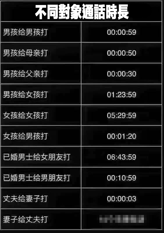 不同對象通話時長的差別,最後一個太爆笑了⋯⋯
