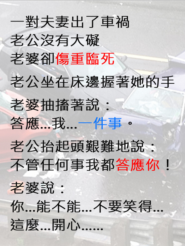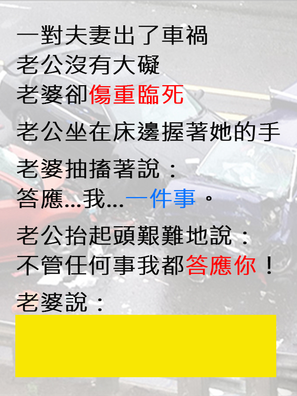 【爆趣】老婆重傷...最後一刻對著老公提出的最後要求竟然是...!