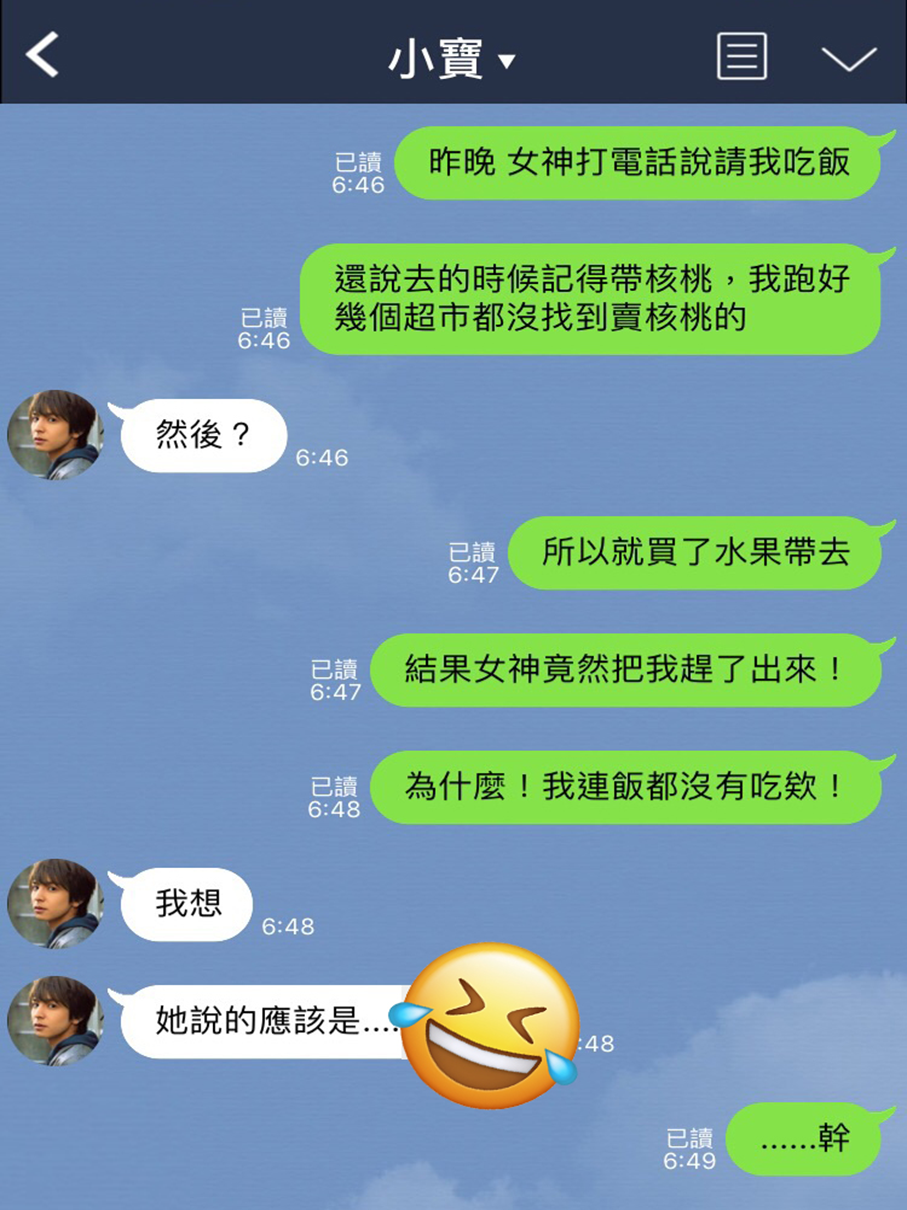 「女神說要請我吃飯還叫我帶核桃來」 沒想到我還是太嫩了啊!