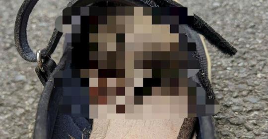「 我眼殘,遠遠看以為牠是紙 !於是我滾阿滾 ,然後拿起來準備要撕掉~ 結果小孩尖叫了 我也尖叫了 ,牠還活著 但尾巴斷了」