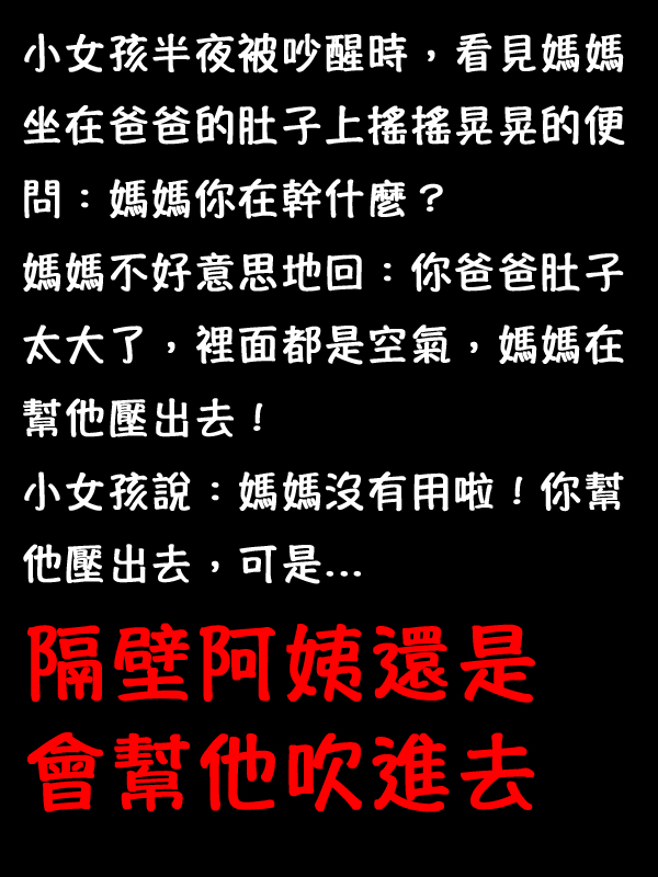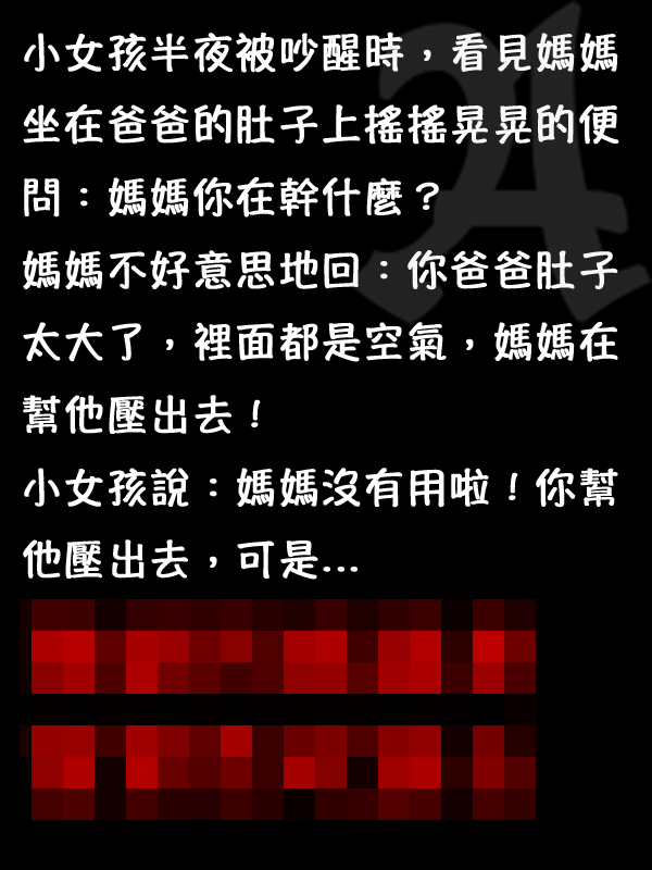【LINE推播】小女孩半夜看見媽媽坐在爸爸身上,媽媽只好說是在...
