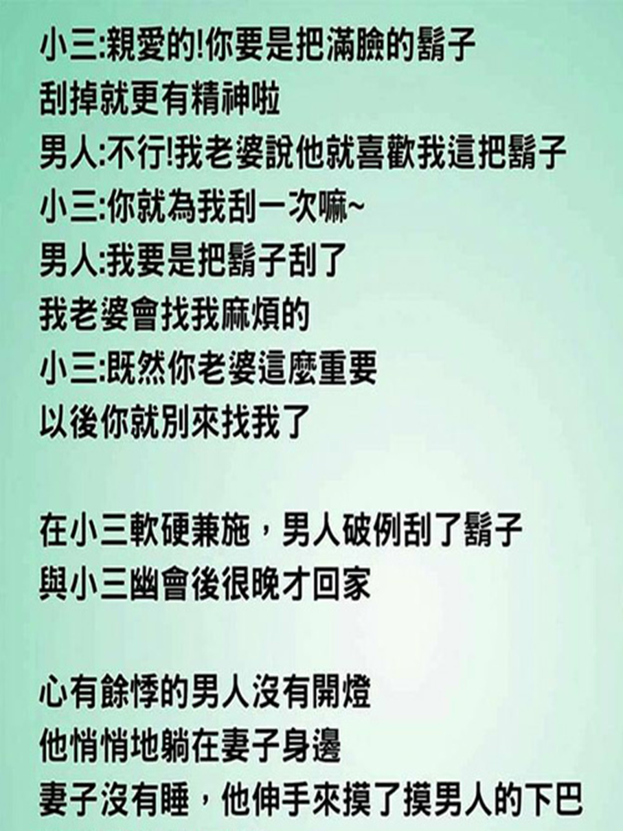 當妻子知道身邊的下巴沒有鬍子... 居然這樣說: