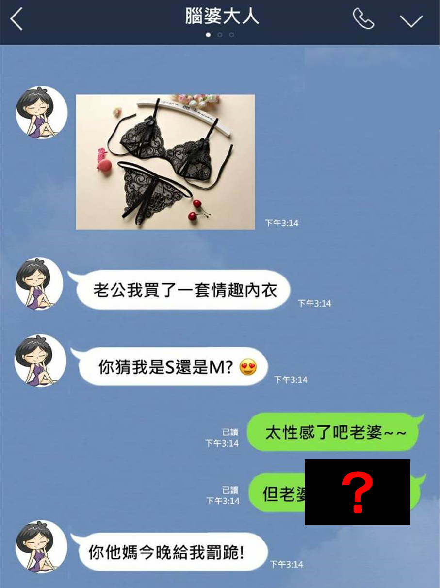 老公我買了一套情趣內衣,你猜我是S還是M? (你他媽今晚給我罰跪!)