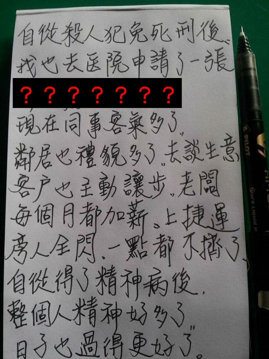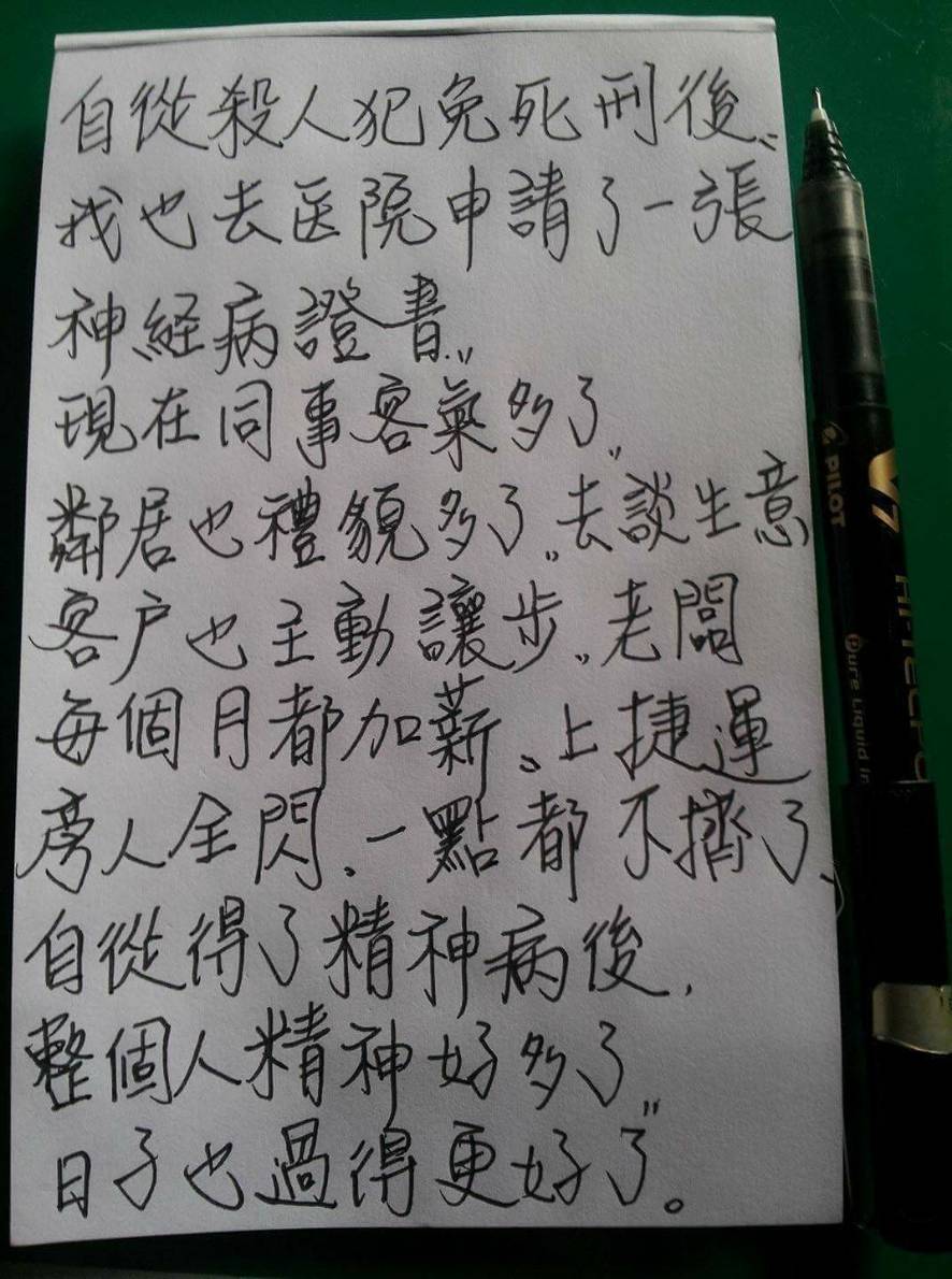 自從殺人犯免死刑後,我也去醫院申請了一張......現在同事客氣多了