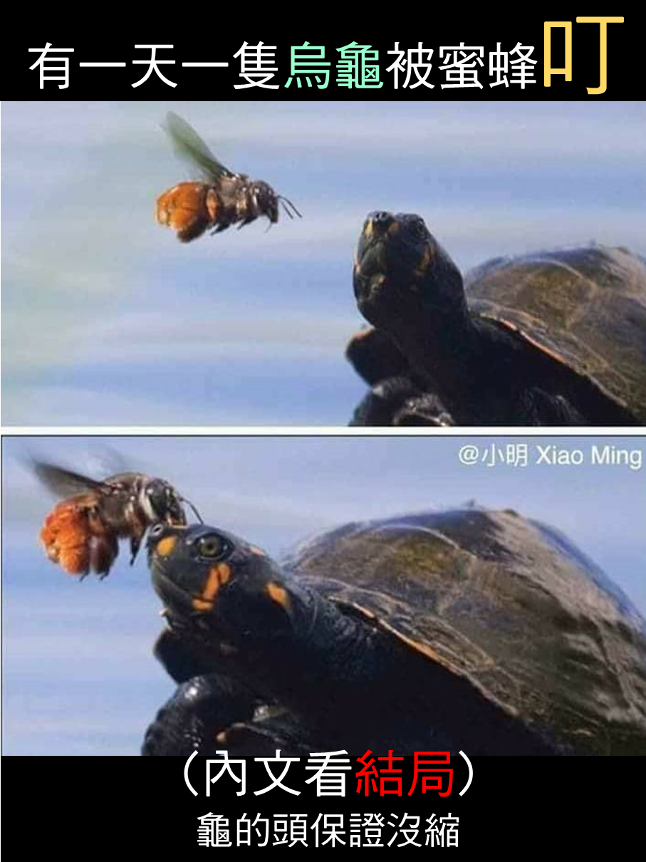 有一天一隻烏龜被蜜蜂叮! 然後呢?(龜的頭保證沒縮!)