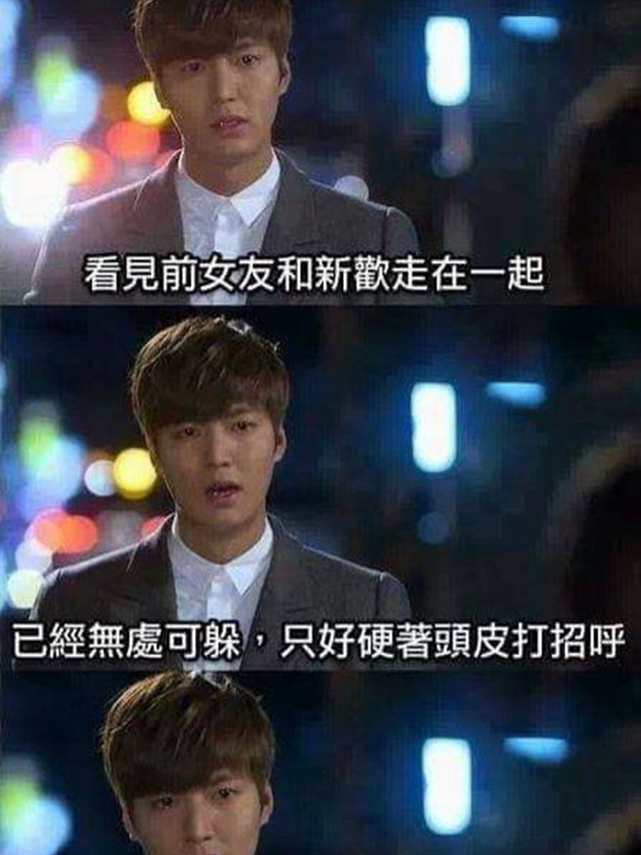 看見前女友和新歡走在一起...已經無處可躲,只好硬著頭皮打招呼!