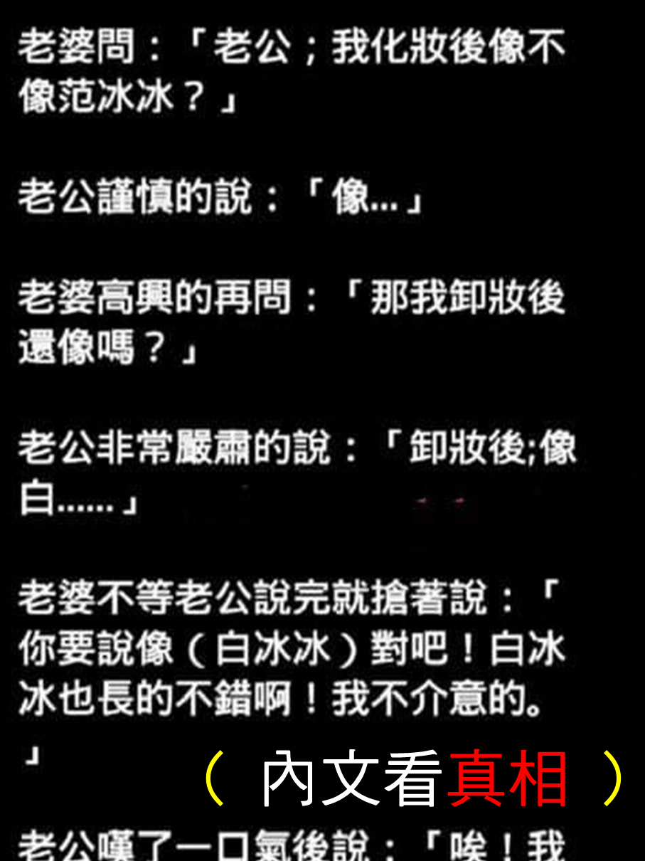 老公很嚴肅地說:「你卸妝後,像白......」