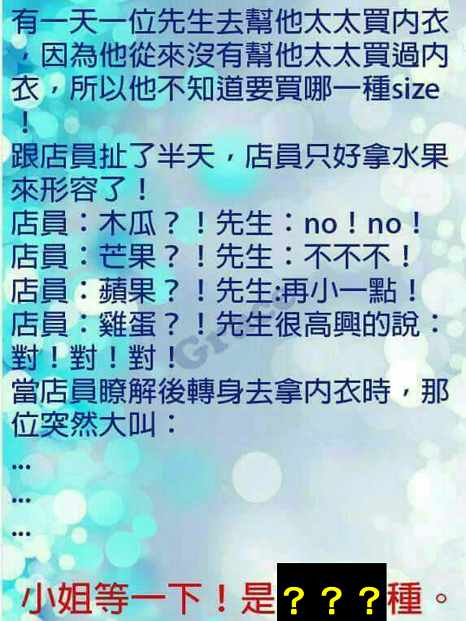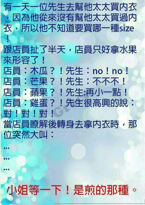 當店員了解之後轉身去拿內衣時 那一位突然大叫:「小姐等一下!是......」
