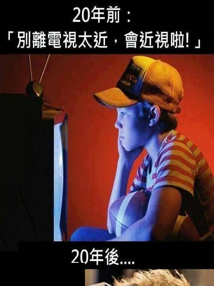 20年前:「別離電視太近,會近視啦!」 20年後...