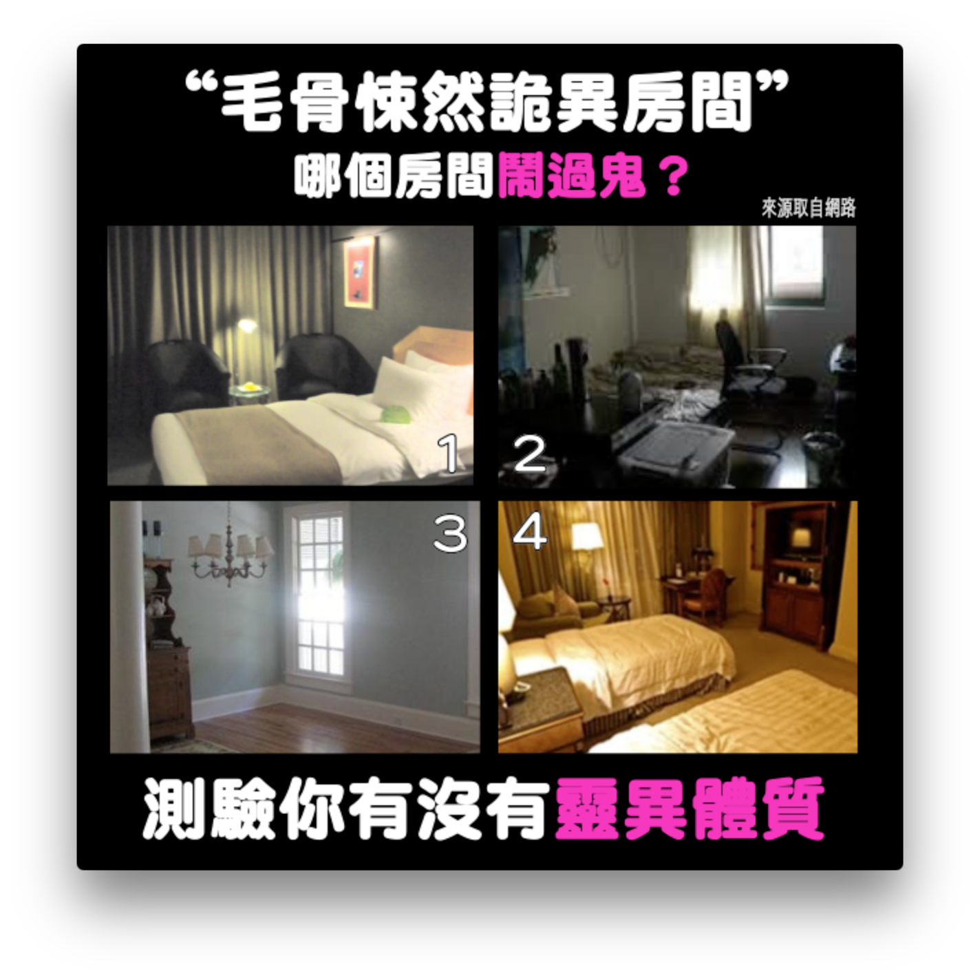 1.選擇一號房間的你,恭喜你~是個超級大麻瓜,八字重到不行的你鬼連看到你都要閃避更何況是看到鬼呢,所以你一輩子都不用擔心遇到靈異事件,因為你完全沒有靈異體質喔!