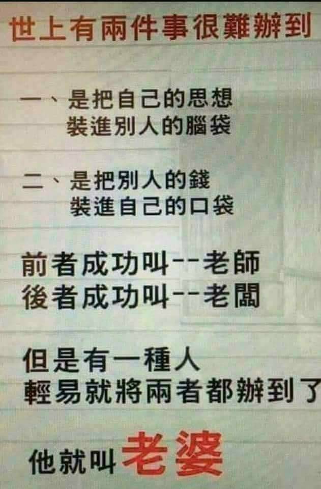 世界上就這兩件事情很難辦到 然而,老婆,卻辦到了!