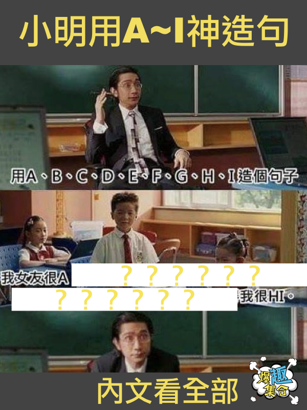 老師叫小明用A~I造句 結果小明造了個18禁的神造句