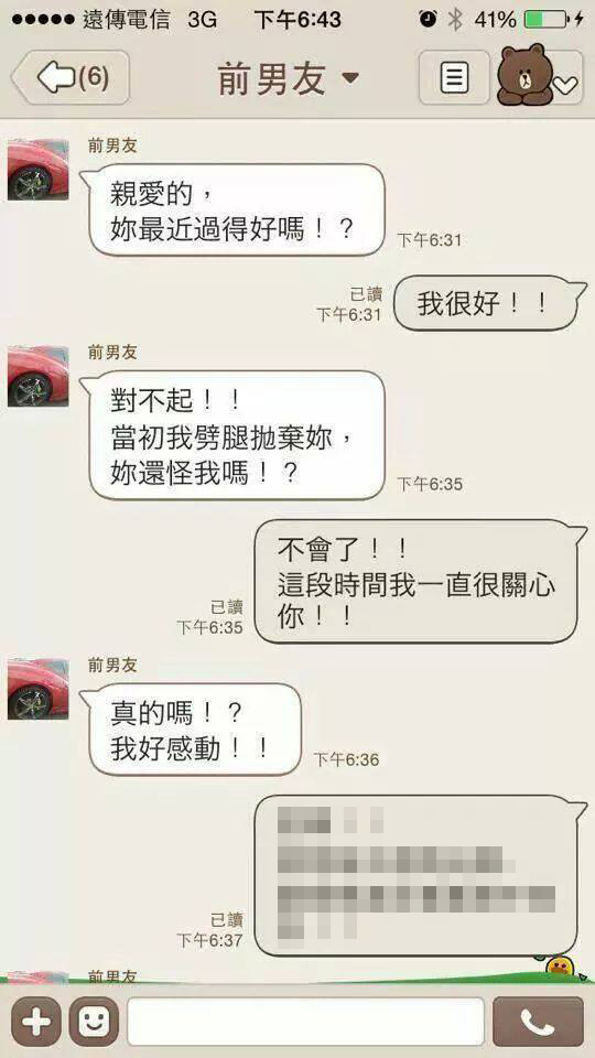 【爆趣】前男友可能是想復合,所以我跟他說我依然很關心他^^