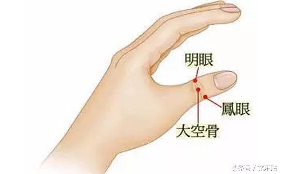明眼、鳳眼這兩個穴位能夠改善眼睛疲勞和急性結膜炎,而大空骨穴可改善一切有關眼睛的癥狀。