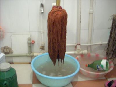 十五分鐘之後教水盆的水倒出,然後再倒半盆清水加上適量的洗衣粉或者洗衣液浸泡半個小時半個小時之後,再將拖把洗幾遍,拖把上的異味兒就沒有了。