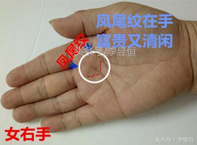 感情線尾端出現「鳳尾紋」婚後夫妻和睦,財福兼收,運勢強轉。此紋在手,一般33歲後容易發福發貴。感情線如果受損,則鳳尾紋的功效則會大有所減。(手相實例圖文,禁止摘抄拚湊)