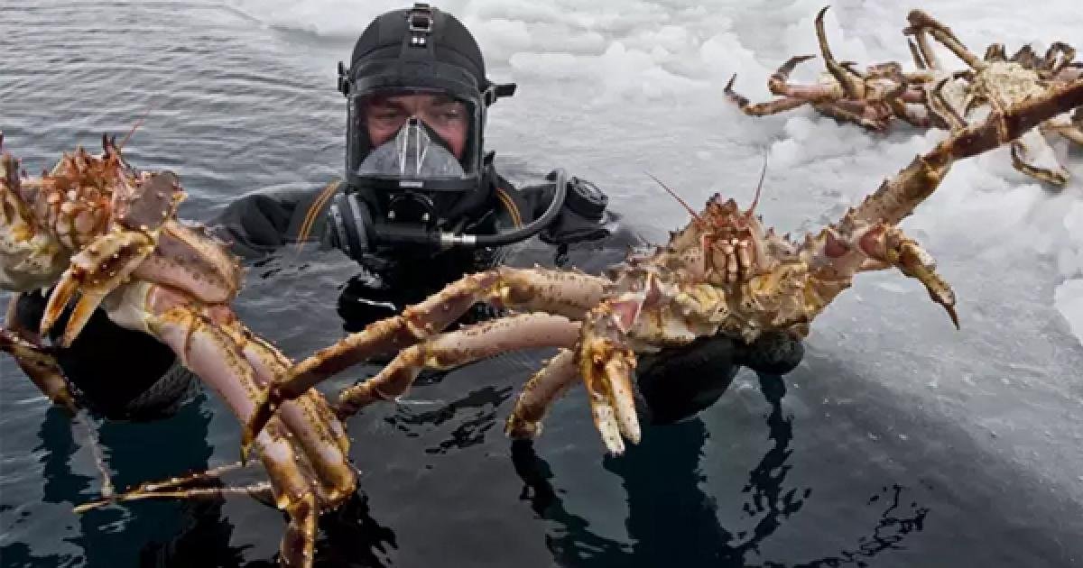 ▼帝王蟹體型龐大,攻擊性很強,生活在這裡的海參、海百合、海蛇尾等生物根本不是牠們的對手。等到水溫上升到一定程度,帝王蟹到較淺水域覓食的那一天,這裡的生物將會麵臨滅頂之災。帝王蟹製霸當地的生態係統,後果不堪設想。