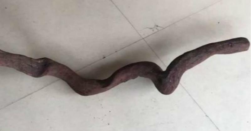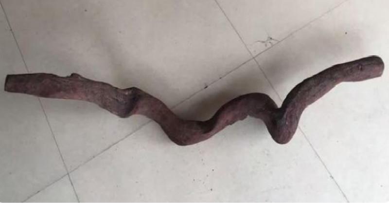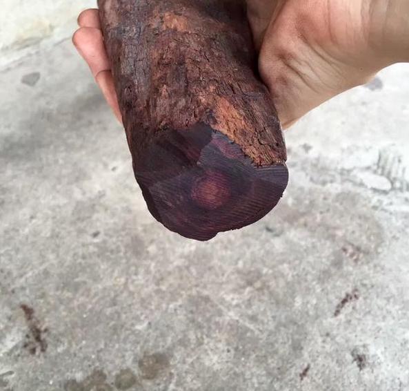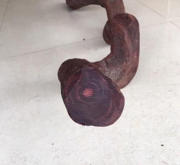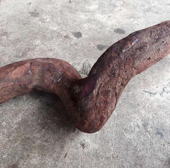 這跟木料看起來很像條蛇.因為造型比較特別,引來了很多人圍觀,大家都想見證這根海黃切開的過程。