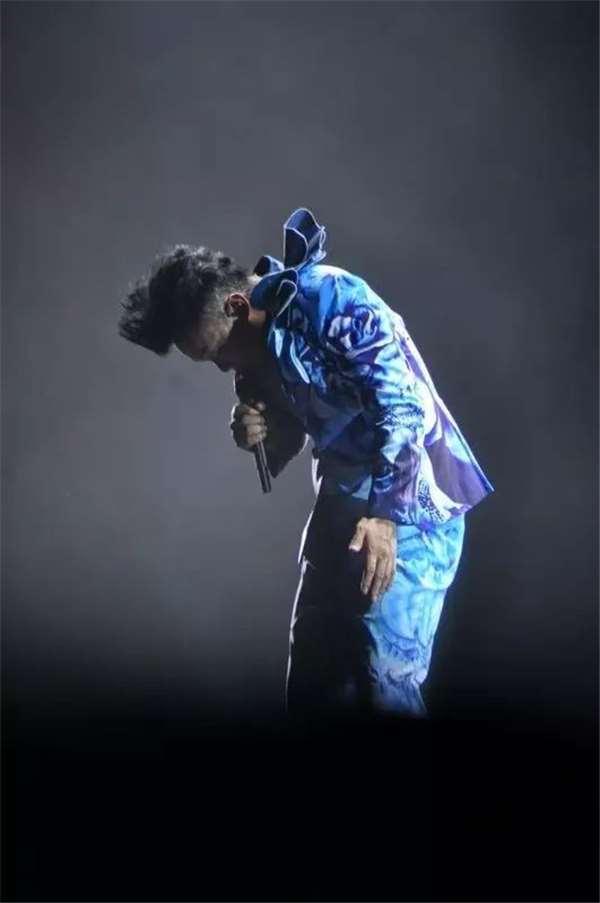 音樂聲繼續流轉,他舉手示意,連連說「不可以」,然後對著台下:「不行不行,林夕在這邊,我一定要重唱。」說罷,竟雙膝跪地,以示尊重。