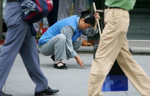 只見我們公司的娜娜正指著一個清潔工阿姨破口大駡,具體的原因我也不清楚,從她的罵聲中得到一些資訊,好像是因為清潔工阿姨不小心把水濺到了娜娜的高檔皮鞋上。(以下為清潔工示意圖。)