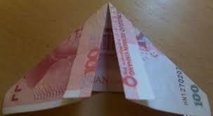 那100塊我沒看得很清楚,但知道是折著,但他說裡面還有夾一張奇怪的紙⋯
